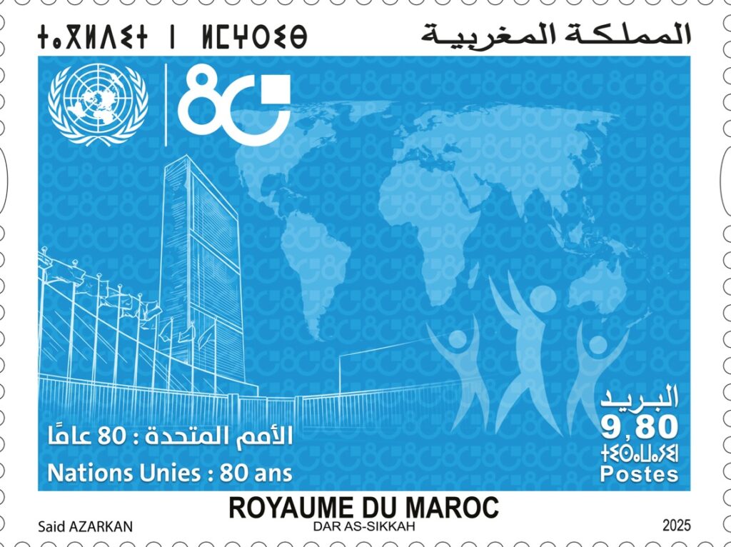 أعلنت مجموعة بريد المغرب، بشراكة مع مركز الأمم المتحدة للإعلام بالمغرب، عن إصدار طابع بريدي تذكاري بعنوان "الأمم المتحدة: 80 سنة"، تخليدًا للذكرى الثمانين لتأسيس المنظمة.